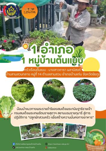 สพอ.บ้านแท่น : ขับเคลื่อนหมู่บ้านต้นแบบการน้อมนำแนวทางพระราชดำริฯ ปลูกผักสวนครัว เพื่อสร้างความมั่นคงทางอาหาร บ้านสามสวนกลาง หมู่ที่ 14 ตำบลสามสวน อำเภอบ้านแท่น จังหวัดชัยภูมิ