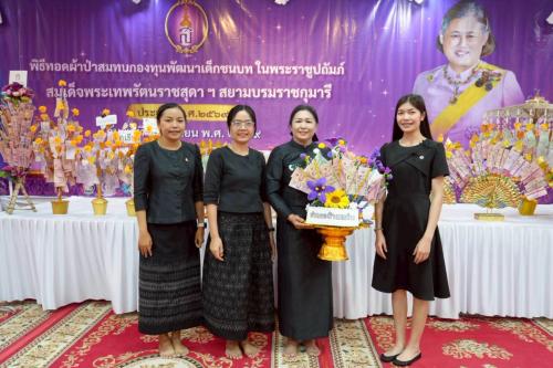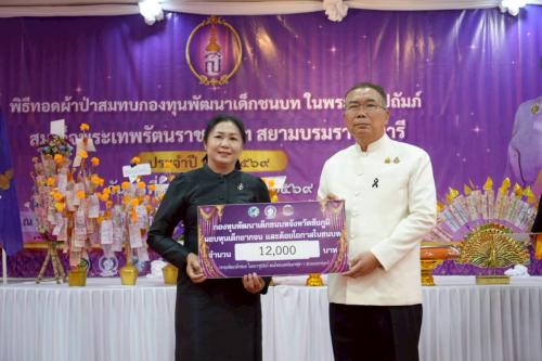 การดำเนินการทอดผ้าป่าสมทบกองทุนพัฒนาเด็กชนบท ในพระราชูปถัมภ์ฯ มีวัตถุประสงค์เพื่อนำเงินทุนช่วยเหลือเด็กที่ครอบครัวมีฐานะยากจนและด้อยโอกาสในชนบท ตั้งแต่แรกเกิดจนถึง 6 ปี ตลอดจนสนับสนุนกิจกรรมการพัฒนาเด็ก เพื่อให้เด็กในชนบทได้รับการพัฒนาอย่างทั่วถึง ทั้งนี้ พระราชชัยสิทธิสุนทร เจ้าคณะจังหวัดชัยภูมิ ได้ประกอบพิธีรับผ้าป่าและมอบคืนเงินผ้าป่าทั้งหมด จำนวน 350,362.76 บาท แก่ผู้ว่าราชการจังหวัดชัยภูมิ และพัฒนาการจังหวัดชัยภูมิ เพื่อนำไปสมทบกองทุนพัฒนาเด็กชนบทในพระราชูปถัมภ์ สมเด็จพระเทพรัตนราชสุดาฯ สยามบรมราชกุมารี ทั้งนี้ คณะกรรมการบริหารกองทุนพัฒนาเด็กชนบทจังหวัดชัยภูมิ ได้อนุมัติให้ใช้จ่ายเงินกองทุนฯ เพื่อเป็นทุนการศึกษาจำนวน 200 ทุน ทุนละ 1,500 บาท ซึ่งมอบทุนดังกล่าวแก่พัฒนาการอำเภอ เพื่อนำไปมอบแก่เด็กในครัวเรือนยากจนและด้อยโอกาสในโอกาสที่เหมาะสม