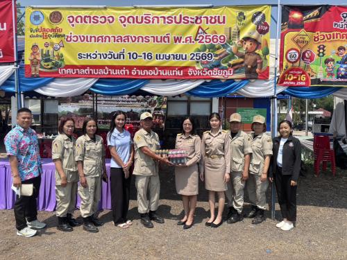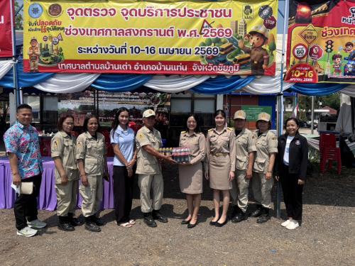 ในโอกาสนี้ ได้มอบเครื่องดื่มแก่ประชาชนที่สัญจรไปมา และเจ้าหน้าที่ประจำจุดตรวจและจุดบริการ เพื่อเป็นขวัญและกำลังใจในการปฏิบัติหน้าที่ พร้อมทั้งกำชับให้เจ้าหน้าที่ดำเนินการตามมาตรการอย่างเคร่งครัด เน้นการรณรงค์ให้ประชาชนปฏิบัติตามกฎจราจร สวมหมวกนิรภัย คาดเข็มขัดนิรภัย และไม่ขับขี่ยานพาหนะในขณะง่วงหรือมึนเมา เพื่อร่วมกันลดอุบัติเหตุและความสูญเสียในช่วงเทศกาลสงกรานต์ พ.ศ. 2569